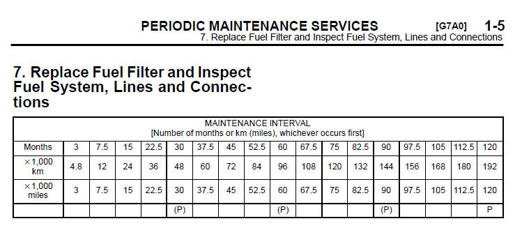 - Топливный фильтр первая замена - 30000 miles
